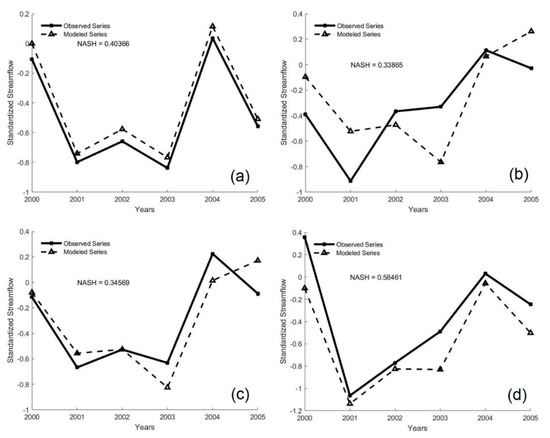 In the time series of affluent natural flows observed in the period from 1931 to 2016, the minimum annual flows of the Itaparica, Sobradinho, Três Marias and Retiro Baixo reservoirs were presented during the last six years. Negative trends, according to the Mann–Kendall Sen test, were found for the first two reservoirs. This period of drought over the NBR has already been reported in several studies, in which they relate to the low-frequency natural variability of the positive phase of the PDO and AMO atmospheric phenomena [