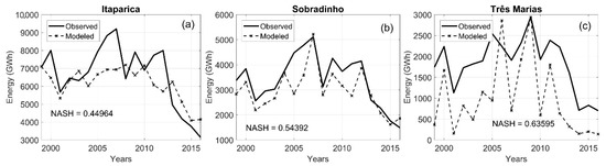 28]. Finally, the monthly hydroelectric energy observed from 1999 to 2016 from the HPP of the São Francisco River was obtained from the ONS and used to validate the hydroelectric energy simulated by the SIGA software [