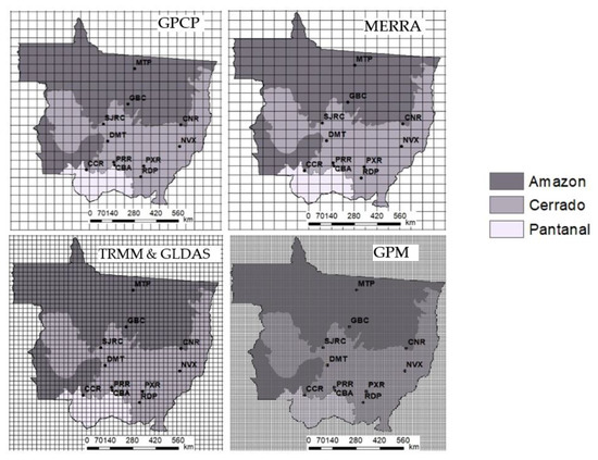 The MERRA product had noticeable limitations as it underestimated precipitation in all locations, and it percutaneously estimated precipitation events that were not measured at the weather stations [37]. In addition, this reanalysis product has a low spatial resolution—a characteristic that makes it difficult to estimate and detect the occurrence of precipitation events in Mato Grosso where precipitation events have high spatiotemporal variability and are mainly influenced by convective events. Convective precipitation events are more complex to be assimilated by reanalysis models [32,38,39,40].
