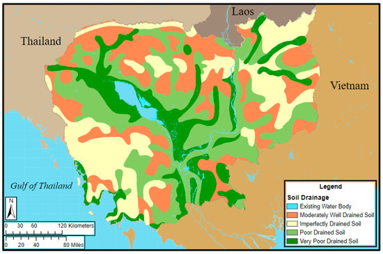 Soil drainage map of Cambodia. Adapted from FAO’s [30] Harmonized World Soil Database.