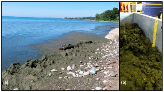 - Howell, E.T. Influences on water quality and abundance of Cladophora, a shore-fouling green algae, over urban shoreline in Lake Ontario. Water 2018, 10, 1569. [Google Scholar] [CrossRef]