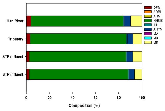 Hong, J.-H.; Lee, J.-Y.; Ha, H.-J.; Lee, J.-H.; Oh, S.-R.; Lee, Y.-M.; Lee, M.-Y.; Zoh, K.-D. Occurrence and Sources of Synthetic Musk Fragrances in the Sewage Treatment Plants and the Han River, Korea. Water 2021, 13, 392. https://doi.org/10.3390/w13040392