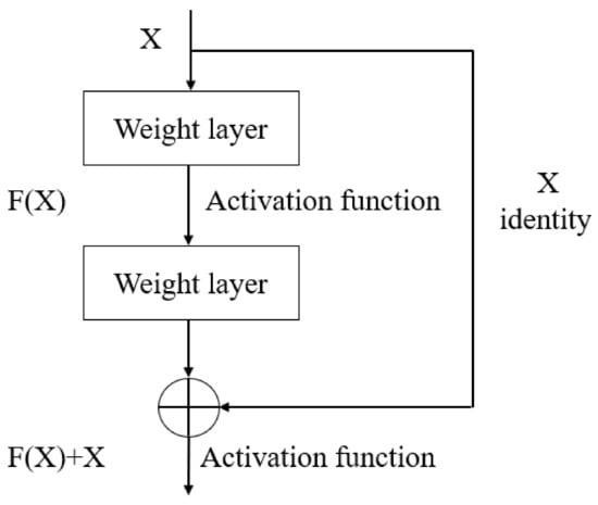 He et al. (2015) adopted residual machine learning to every few hidden layers [25]. A building block can be shown in Figure 2. Mathematically, a building block can be demonstrated as the following equation: