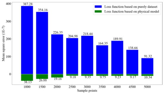 The comparisons between mean square error of velocity calculated by loss function based on purely dataset and that calculated by loss function based on physical model.
