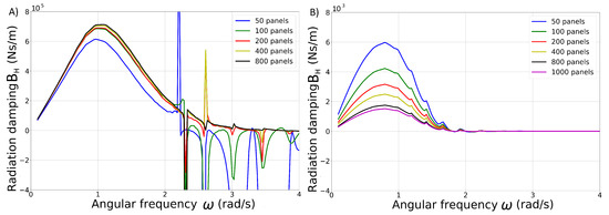 Mesh convergence study for (A) the HPA WEC and (B) the OSWEC for different panel discretizations.