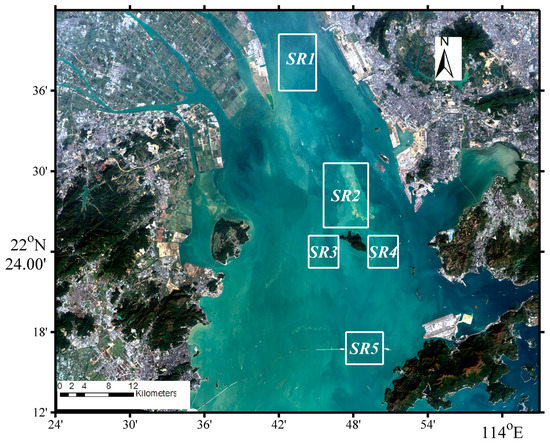 True color image of the Landsat-8 data acquired on 3 January 2015. The five extracted Scheme 1. represents subregion 1, SR2 represents subregion 2, etc. SR2 is the sand excavation area.