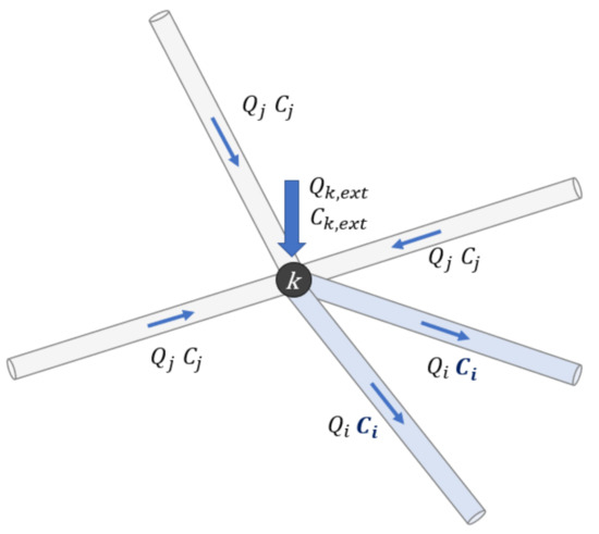 - Ck,ext is the concentration of the external flow entering at node (mg/l).