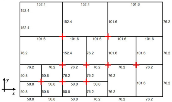 These values are also calculated for the twelve scenarios (S1 to S12) of this paper, named and (the added suffix Si corresponds to the twelve scenarios of this study, i = 1, 2… 12). For example, converting the four boundary velocities of scenario S1 (Table 2) to l/s, the flow rates are: QN = 9.048, QW = 10.292, QE = 8.610, and QS = 10.730 (l/s). From Equations (7a) and (7b), = 0.879 and = 0.802. The ratios and for the twelve scenarios are shown in Table 4. In general, the variables and describe the proportion of the flows at the inlets and outlets of the CJ.