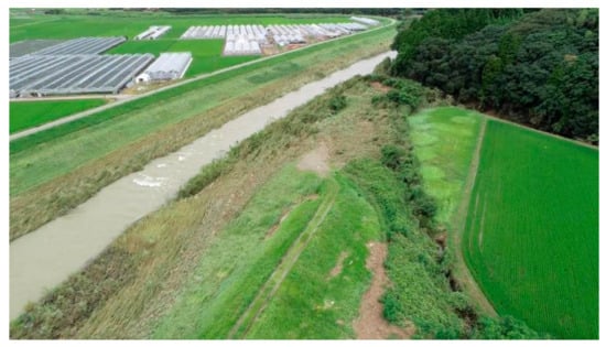 - Teramura, J.; Kitamura, K.; Shimatani, Y. Functional evaluation of open levees in the Okawano area of the Matsuura River. Annu. J. Hydraul. Eng. 2020, 65, 445–450. [Google Scholar]
