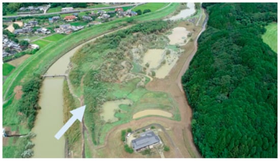The Matsuura River basin features numerous ancient burial mounds and settlements dating back more than 2000 years. At present, urbanization has not progressed outside the estuary, and modernization has not significantly altered the terrain or the forms of rural settlement. Azame-no-se is a wetland created in recent years as part of a nature restoration project. We selected it as a research site because it serves the purpose of this study, namely elucidating the flood control and ecosystem services of the river’s open levees.