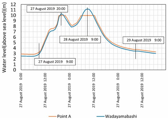 - Source: Water level data, Wadayamabashi. Available online: http://www1.river.go.jp/cgi-bin/SiteInfo.exe?ID=309021289903030View (accessed on 10 January 2021).