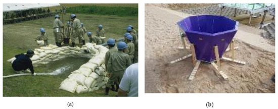 (1) The water defense methods such as hydraulic wells and installing soil bags refer to emergency treatment that is promptly performed so that the embankment does not collapse when there is an abnormality in the embankment during a flood. By installing a hydraulic well or stacking soil bags, the water pressure is weakened by reducing the difference in the water level between the riverside and the leak point of the embankment. Therefore, it is possible to prevent the collapse of the embankment. These construction methods are temporary measures and are different from permanent construction methods such as installing sheet piles at the bottom of the embankment or reinforcing the entire embankment.
