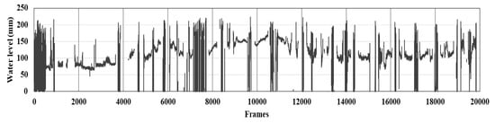 Figure 4 shows the water levels obtained from the entire CCTV footages, and the level ranged from 0 to 220 mm. These data have many errors, and three steps were applied to eliminate these errors.