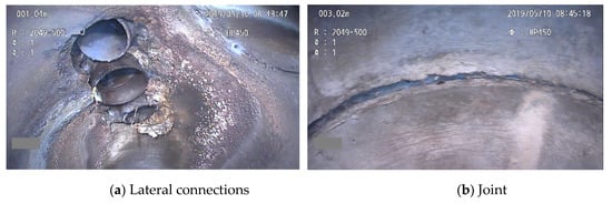 The recent development of image recognition techniques using deep learning has enabled quantitative information to be extracted from images or videos. Deep learning entails a class of algorithms that learn representations of data with multiple levels of abstraction via multiple processing layers []. Layers of features, which are not designed by engineers of a specific field, are used for general-purpose learning. Some studies have automatically detected defects from CCTV footage using these advantages [,,], but they were limited to functional defects inside pipes such as cracks, deposits, and tree roots. These studies used software applications to investigate the types of defects that can be identified using existing CCTVs.