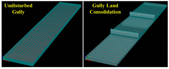 In response to the water disaster in the GLC, it seems there are two ideas to solve these problems. Firstly, we can drain surface runoff by building drainage trenches in the farmlands and the drainage canals on both sides of the reshaped gully [33]. This method applies to farmlands downstream of the gully, because if drainage trenches are placed on farmlands upstream of the gully, there is more surface runoff flow to downstream lands, increasing the risk of water disasters in the downstream gully. Moreover, the upper stream’s landform is more twisted than that of the downstream and does not favor water drainage.
