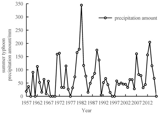 Summer typhoon precipitation amount during 1957–2016 in Anhui Province.