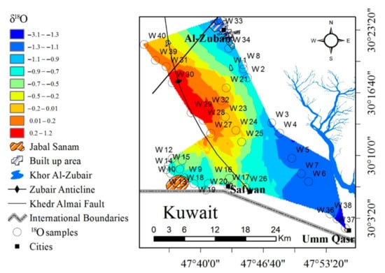 - Hadi, K.; Kumar, U.S.; Al-Senafy, M.; Bhandary, H. Environmental isotope systematics of the groundwater system of southern Kuwait. Environ. Earth Sci. 2016, 75, 1096. [Google Scholar] [CrossRef]