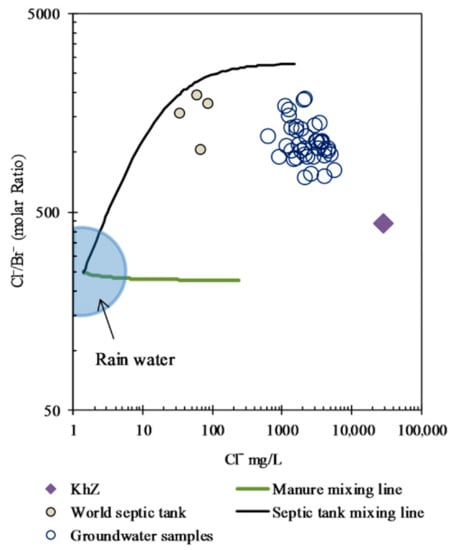 - Katz, B.G.; Eberts, S.M.; Kauffman, L.J. Using Cl/Br ratios and other indicators to assess potential impacts on groundwater quality from septic systems: A review and examples from principal aquifers in the United States. J. Hydrol. 2011, 397, 151–166. [Google Scholar] [CrossRef]