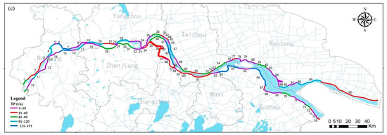 Some scholars have already studied the WEC of the Yangtze River. The WEC of the Chongqing section of the river was calculated using the coupled 1-D and 2-D models []. In addition, Chen et al. [] calculated the allowable discharge loads in the Jiujiang section of the river under different hydrological conditions and in different water quality restricted zones. Li et al. [] measured the WEC of the Nantong section of the river. However, there has been little research on the recent WEC of the whole Jiangsu section of the Yangtze River.