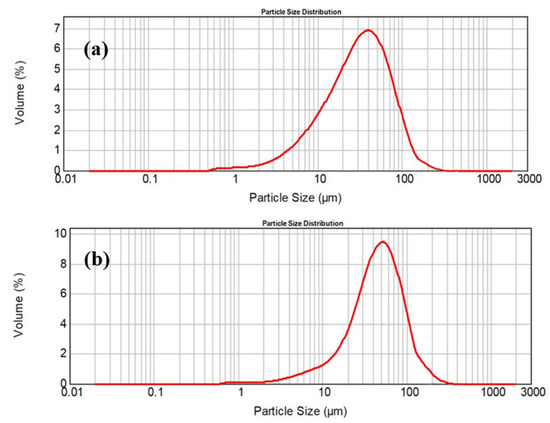 (a) Particle size distribution of sludge before electrochemical treatment, (b) Particle size distribution of sludge after electrochemical treatment.