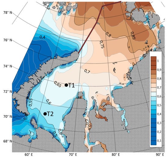 - Atlas of Hydrometeorological and Ice Conditions of the Seas of the Russian Arctic; Neftyanoe khozyaistvo: Moscow, Rrussia, 2015; 128 p.