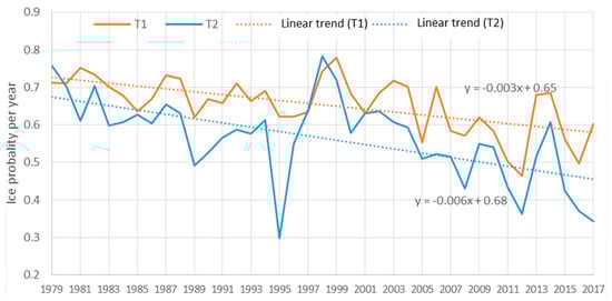 - Maslanik, J.; Stroeve, J.; Fowler, C.; Emery, W. Distribution and trends in Arctic sea ice age through spring 2011. Geophys. Res. Lett. 2011, 38, L13502. [Google Scholar] [CrossRef]