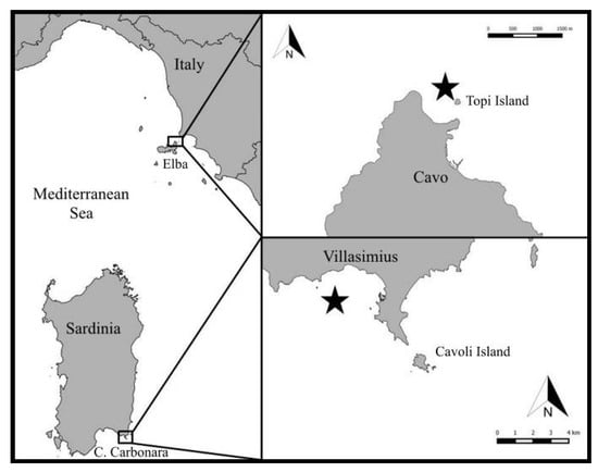 - Acunto, S.; Bacchetta, G.; Bordigoni, A.; Cadoni, N.; Cinti, M.F.; Duràn Navarro, M.; Frau, F.; Lentini, L.; Liggi, M.G.; Masala, V.; et al. The LIFE+ project “RES MARIS-Recovering Endangered habitats in the Capo Carbonara MARIne area, Sardinia”: First results. Plant. Sociol. 2017, 54, 85–95. [Google Scholar]