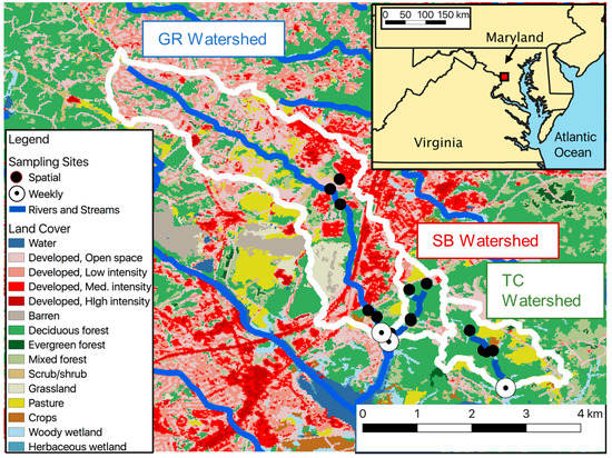 Geographic analysis of the watershed upstream of each sampling site was conducted using the USGS StreamStats tool [33] and ArcGIS v10.5.1 (ESRI, Redlands, CA). Statistical analysis was completed in RStudio version 4.0.2 (RStudio Team 2020).