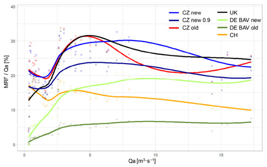 In terms of comparison of the methods of determining MRF values in individual European countries, the proposed MRF values in the Czech Republic are rather above average (see the Figure 10). This is due to the hydrological conditions of the Czech Republic, nature conservation needs, and ensuring enough water for further use.