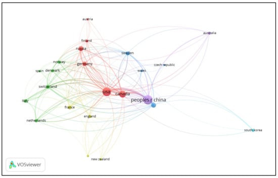 Figure 3 shows the mutual citation relationship among the 23 countries with minimum five publications. China, the United States, and Japan have published a large number of articles in this field (Table 1, Figure 3), which may represent that they have a greater impact in this field. In addition, China, the United States, and Canada have stronger collaborative relationships as indicated by the thicker lines between them compared with other countries (Figure 3).