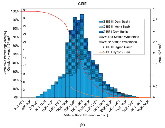 Hypsographic curve at dam sites. (a) Grand Ethiopian Renaissance Dam (GERD) and (b) GIBE.