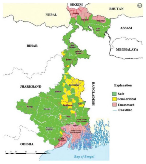 Critical, semi-critical, and safe groundwater blocks of West Bengal. Source: [62,63].