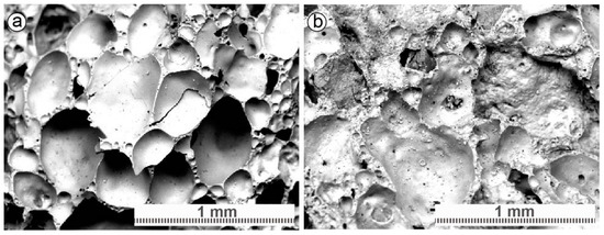 Morphological features of the particle surface for Arlita (a) and Filtralite (b).