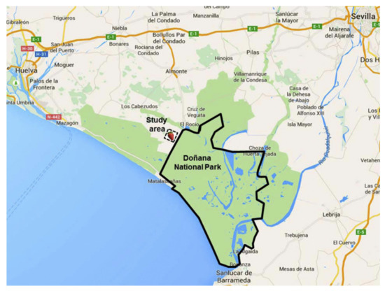 Location of the Doñana National Park and the study area (trials).