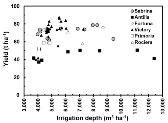 3.1. Yield vs. Irrigation Depth