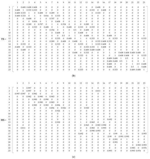 where A, TS, and HS are the adjacency matrix, matrix, and matrix, respectively. To visualize the formulation, Equation (7) can be rewritten as