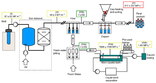 MP concentrations found in this study along the process of mineral water bottling (Drawn using RI-CAD, HiTec Zang GmbH, Germany).