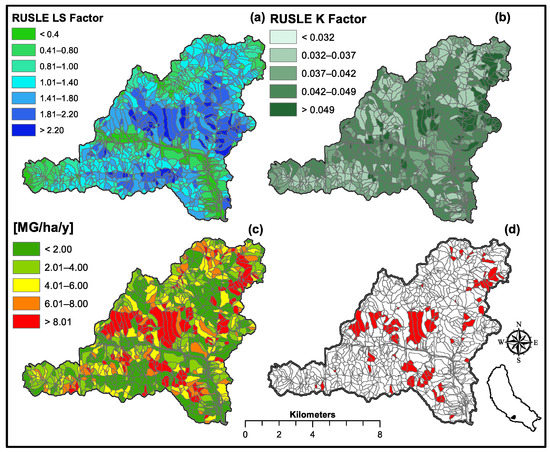 - Renard, K.G.; Foster, G.R.; Weesies, G.A.; McCool, D.K.; Yoder, D.C. USDA Handbook No. 73. Predicting Soil Erosion by Water: A Guide to Conservation Planning with the Revised Universal Soil Loss Equation (RUSLE); USDA-ARS: Tucson, AZ, USA, 1997.