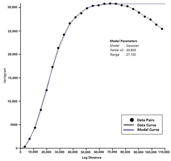 The whole area of UAE was divided into a grid of equal squares with an area of 1 km2. The kriging technique with the appropriate variogram models was used to assign the values of aquifer base elevation (mamsl; meters above mean sea level), water table elevation, and saturated thickness (in years 1969, 2005, 2010, and 2015), safe yield (sy), groundwater salinity for years 1969, 2005, 2015 for each of the 71,572 grid squares (Figure 1). The gridding techniques may adopt either an exact or an approximate interpolator according to the adjustments and objectives of the user. Kriging can be fitted to a data set by specifying an appropriate variogram model, which was used to match a model of the spatial correlation of the observed variables. The variogram (an example is shown in Figure 8) was a measure of how quickly variables change on average. This step will guarantee that none of the above parameters will be over or under-estimated at any cell, in particular, using the appropriate control points (e.g., points with constant head and salinity in the Arabian Gulf and Oman Sea). The procedure for stochastic modeling and variogram testing was repeatedly used with each parameter to avoid the need for sensitivity analysis, which might not be possible for some parameters.