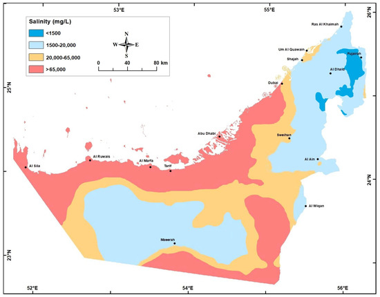 - EAD. Groundwater Atlas of Abu Dhabi Emirate; Environment Agency: Abu Dhabi, United Arab Emirates, 2018. [Google Scholar]
