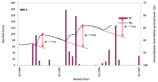 where IP is the infiltration percent (expressed as integers from 0 to 100) and P is the average annual precipitation rate in millimeters. Then this relationship was improved by [37], to the following empirical relationship to determine the groundwater recharge in limited climatological homogenous areas.