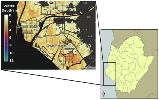 Several important wetlands in Taiwan located near the southwest coast are listed in Table 1. Taiwan has two wetlands of international importance according to Asian Wetland’s report from the International Union for Conservation of Nature (IUCN), including Zengwun Estuary Wetland and Sihcao Wetland, both of which are located in Tainan City (Figure 2). The Zengwun Estuary Wetland, situated at the mouth of the Zengwun River, is a bio-diversified habitat that attracts hundreds of Black-faced Spoonbills. The Sihcao Wetland is located in the intersection area where the Zengwun River, Luermen River, Yanshuei River, and Chianan Big Ditch meet, southwest of Provincial Highway 17. The wetland has more than 300 Black-faced Spoonbills visiting during winter, and around one hundred pairs of Black-winged Stilts breeds there. In addition, Sihcao meets the standards and guidelines of an important bird area (IBA). Furthermore, Sihcao has mangroves at the intersection area of seawater and land. It is considered as one of the most important and best-preserved habitats for mangrove growth, with the highest biodiversity along the Taiwan coastline.