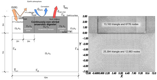 In this case, the proposed anaerobic lagoon is located in temperate zones and is subjected to the environmental thermal conditions considering that there are no thermal loads on the sides of the domains, so the ground heat flow is transmitted vertically.