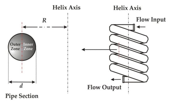 - Saffari, H.; Moosavi, R.; Nouri, N.M.; Lin, C.X. Prediction of hydrodynamic entrance length for single and two-phase flow in helical coils. Chem. Eng. Process. Process Intensif. 2014, 86, 9–21. [Google Scholar] [CrossRef]