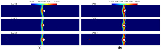 The dynamic pressure distributions around the substructure’s circumference at different time steps for all the simulation cases are presented in Figure 15.