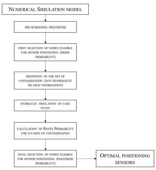 In conclusion, the methodology should be upgraded and tested to take into account the presence of multiple contamination sources and the possibility of deploying Lagrangian sensors carried by the flow. Additionally, the comparison with fault isolation approaches [36] may be interesting from the perspective of transferring the fault mode and effect analysis (FMEA)-type approaches to the water industry.