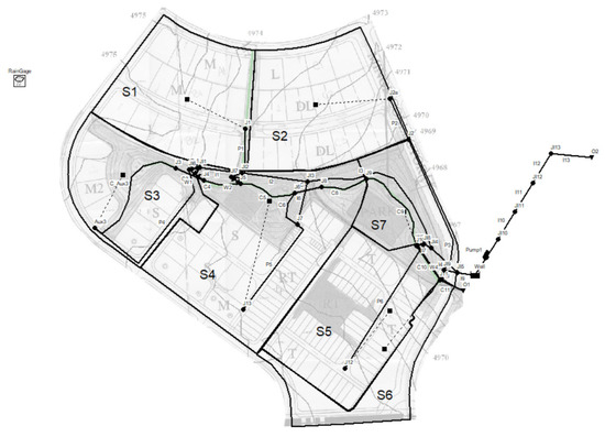 SWMM is the Storm Water Management Model of the US Environmental Protection Agency (EPA) that use the one-dimensional De Saint Venant equations (DSVe). More information can be found in Gironàs [33]. Besides to contain a flexible set of hydraulic modelling capabilities used to route runoff and external inflows through a drainage system network of pipes, channels, storage/treatment units and diversion structures, SWMM can also estimate the production of pollutant loads associated with this runoff. These processes can be modelled for any number of user-defined water quality constituents. In this study, this function was used.