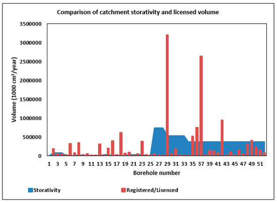 Relationship between storativity and licensed volume.