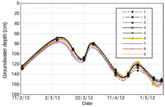 - Okuda, Y.; Onishi, J.; Shirokova, Y.; Kitagawa, I.; Kitamura, Y.; Fujimaki, H. Water and salt balance in agricultural lands under leaching with shallow subsurface drainage used in combination with cut-drains. Water 2020, 12, 3207. [Google Scholar] [CrossRef]