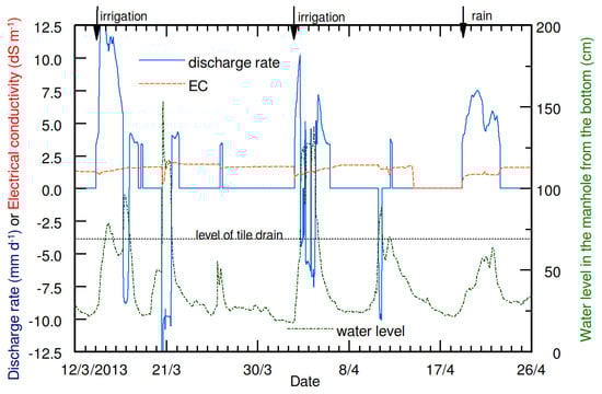 3.3. Discharge Rate and EC of Outflow from the Lateral Drain